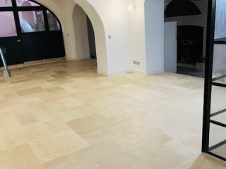 Pavimento fornecido pela Plurimármores, num excelente trabalho realizado na remodelação de uma casa em Alcáçovas Alentejo. Moleanos betoneirado de várias dimensões e tonalidades que funcionam na perfeição na obtenção de um pavimento funcional, elegante e de estilo rústico contemporâneo.