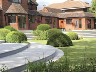 Projecto em Birmimgham UK em Azul da Bélgica com acabamento de jacto de areia para lhe tornar anti-derrapante. Jardim muito…